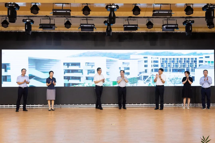 ▲ 栖霞区政府、南京经开区管委会、南外仙林分校、南京华侨城公司等领导共同开启智慧大门。