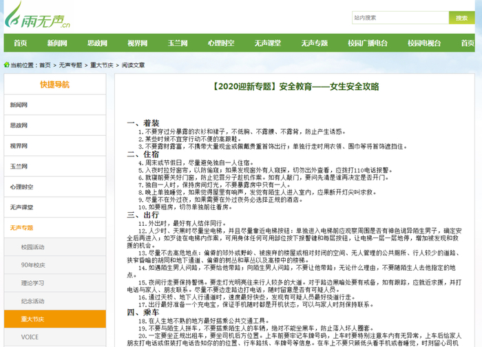 广西大学“雨无声”栏目发布女性安全攻略 “雨无声”官网 图▲