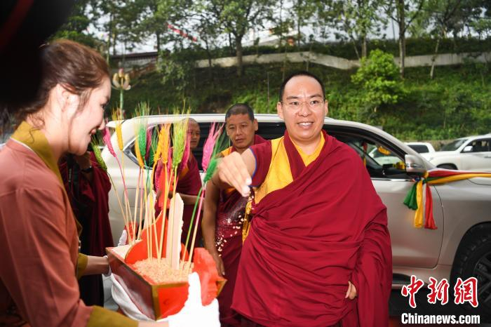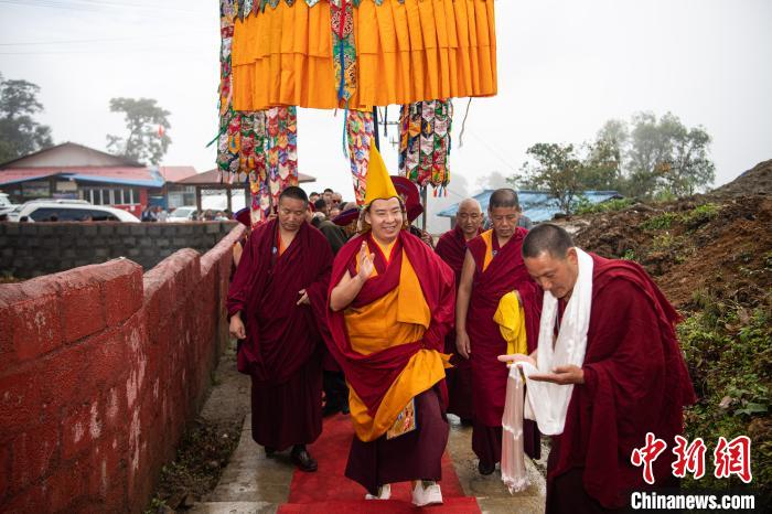 8月30日,十一世班禅来到墨脱县仁青崩寺礼佛,仁青崩寺以最高礼仪迎请班禅。中新社记者 何蓬磊 摄