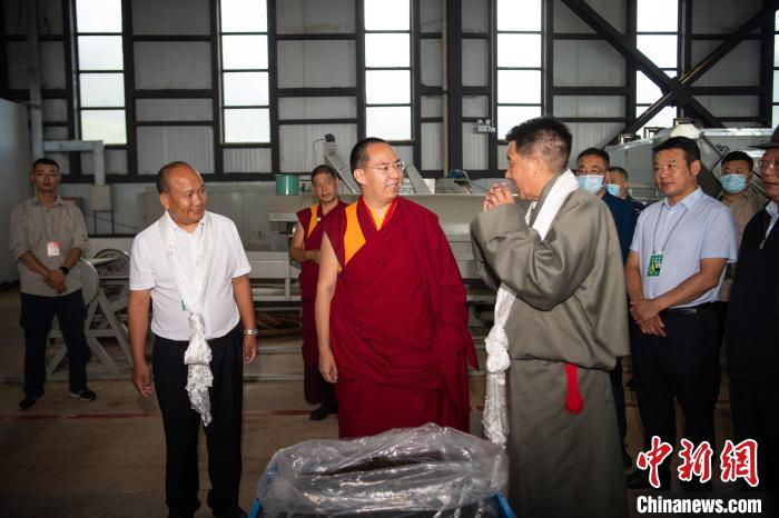 8月31日,十一世班禅在墨脱县墨脱村茶叶加工车间视察。中新社记者 何蓬磊 摄