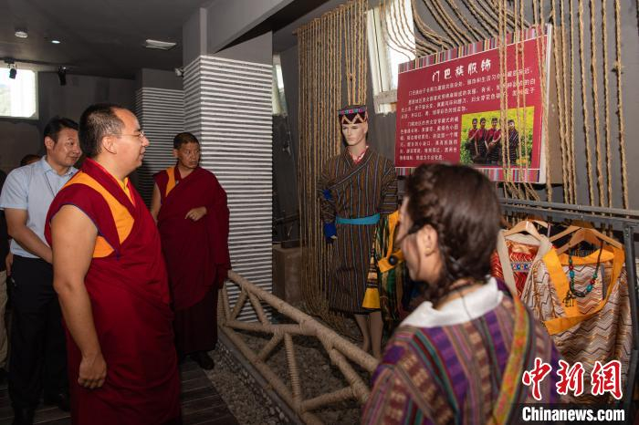 8月31日,十一世班禅在墨脱县门珞历史文化遗产博物馆参观。中新社记者 何蓬磊 摄