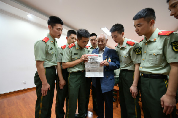 纪念中国人民抗日战争暨世界反法西斯战争胜利75周年纪念日 武警官兵听94岁抗日老兵讲抗战故事