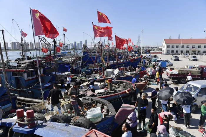 开海首日,滨海新区近400艘渔船分别从北塘、东西沽、大神堂、中心渔港等码头拔锚起航出海捕捞。随着出海开捕的第一批渔船满载而归,沉寂已久的新区各大渔港码头再次热闹起来。皮皮虾、海蟹、鲅鱼、海鲶鱼等各种海鲜吸引了众多市民前来选购。