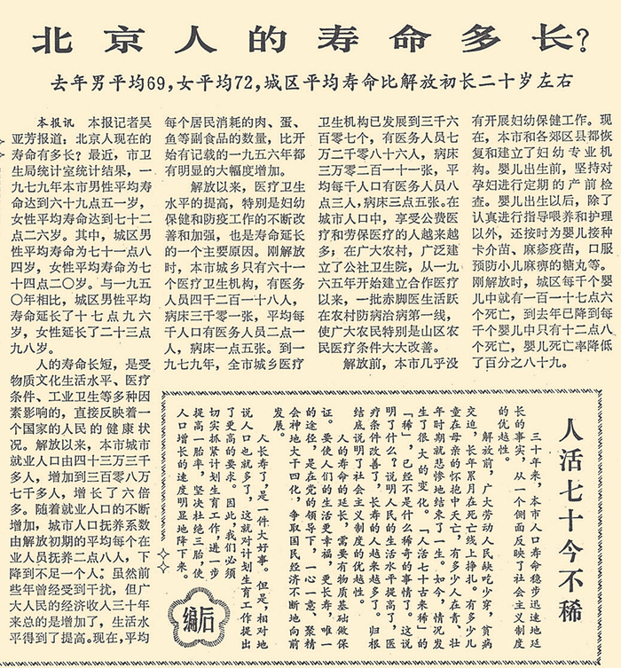 1980年5月2日,《北京日报》1版,《北京人的寿命多长?》