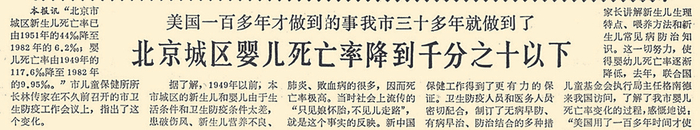 1984年6月4日,《北京日报》1版,《北京城区婴儿死亡率降到千分之十以下》