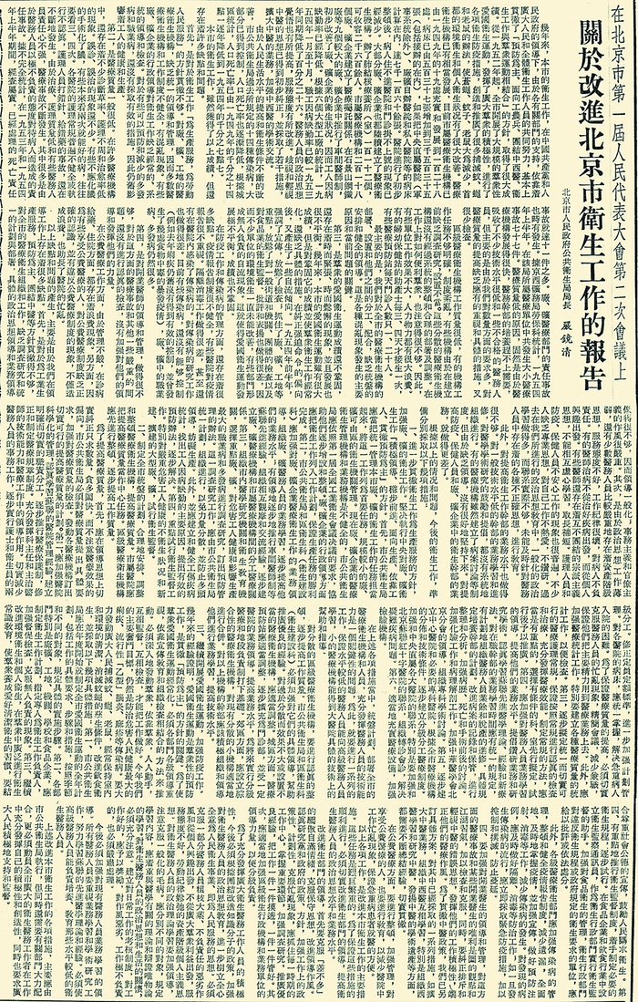 1955年2月10日,《北京日报》2版,《关于改进北京市卫生工作的报告》