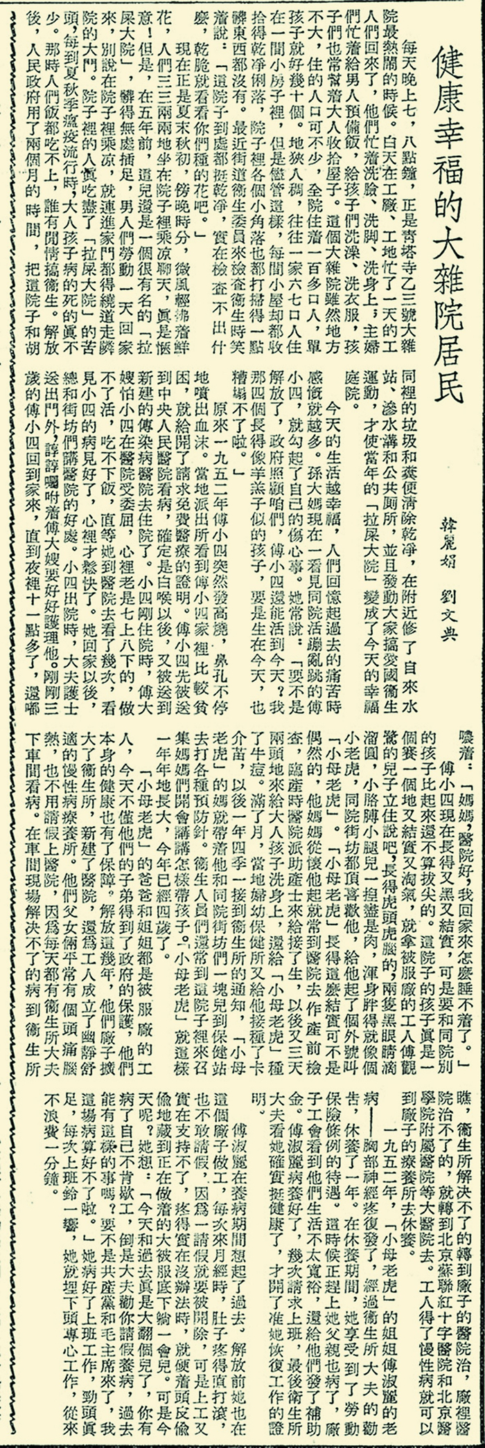 1954年8月21日,《北京日报》2版,《健康幸福的大杂院居民》