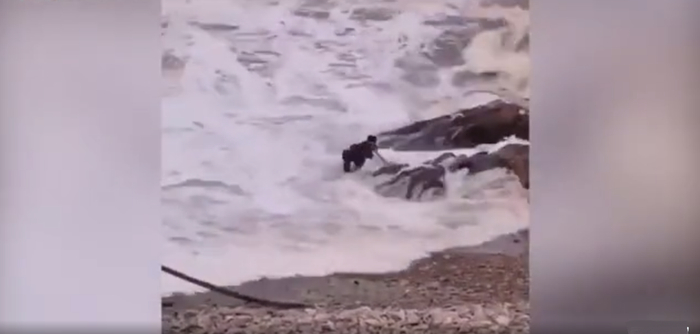 据网友拍摄的一段视频显示,在海边的岩石旁,有人在往海岸方向游,游到低处的岩石上。随后,海浪袭来,拍打在岩石上。在另一段视频中,救援人员已赶到现场,在海上进行施救。