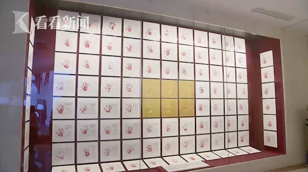 李赛说:“其中年龄最长的有102岁,平均年龄都是在90多岁,金色的六枚手印参加过淞沪会战抗战老兵手印, 其他的手印是在14年抗战中参加过战役的手印 ,现在这么繁华的国家是在这些老兵的手印下撑起的这片繁华。”