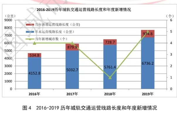 中国城市轨道交通协会今年5月9日发布了《城市轨道交通2019年度统计和分析报告》(下称“报告”),报告显示,截至2019年底,中国内地共有40个城市开通城轨交通运营线路208条,运营线路总长度达6736.2公里。