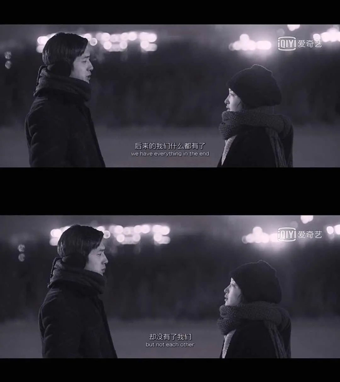 回家后,躲在被子里的我想哭却又哭不出来,内心情绪早已在女主说着“I miss you ”时跟随翻涌。原来真有俩人互相惦念着却没在一起。
