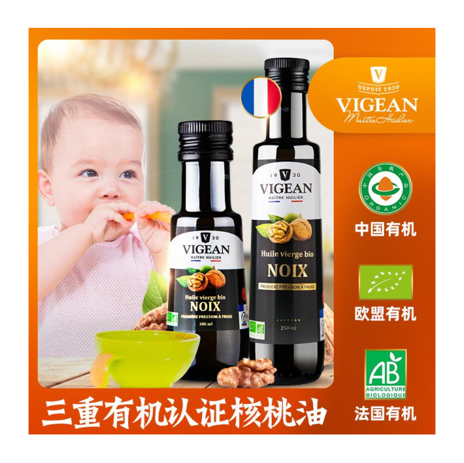 菲利普维尚有机冷榨核桃油——一款完整保留核桃营养成分、孩子吃了更健康的有机核桃油。