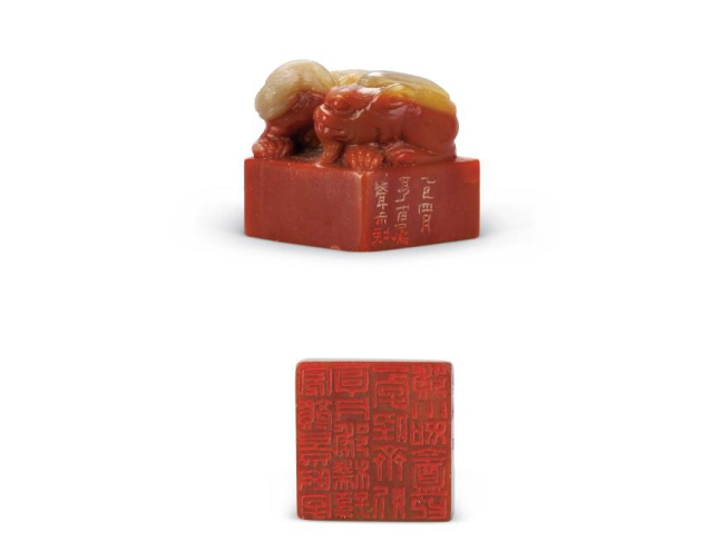 第四单元“石以名志”主要通过寿山石印章、摆件等展示寿山石雕工艺。清代各种雕刻技艺日臻成熟,形成东门、西门两大雕刻技艺流派,名家辈出,为寿山石雕艺术发展奠定极好基础,大量精品留传至今。