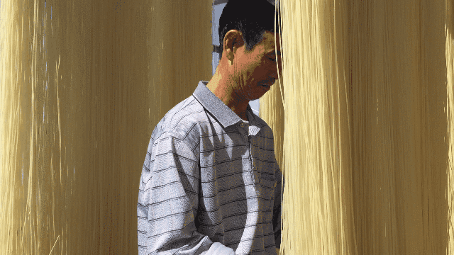老化好后的米粉,太阳晾晒,使水分减少,利于保存。利用天然晒干需要天气的配合,从而手工米粉的产量不稳定,但显得更加珍贵。