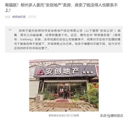 据广西柳州公安局网站9月3日通报,安创地产卖房出现连环套路,多人房产已白搭,警方现向全城急寻更多线索。