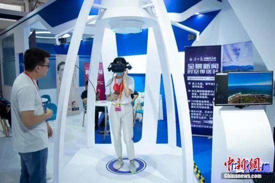 记者在2020服贸会媒体融合展区内体验VR全景看新闻。中新社记者 田雨昊 摄