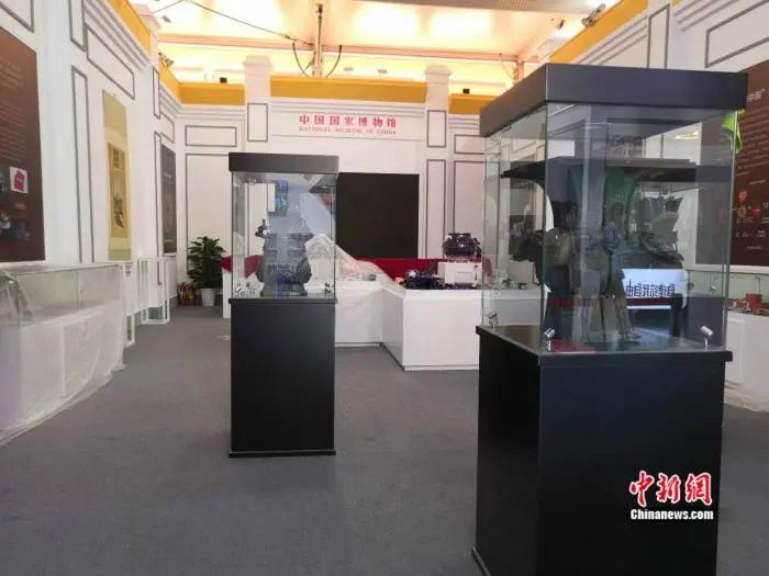 中国国家博物馆在服贸会上的展台正在准备中。彭婧如 摄
