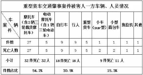 众所周知,重型货车交通事故危害大、死亡率高,严重威胁人民群众的生命财产安全。2016年1月至2020年6月,茂名市电白区检察院共受理公安机关移送审查起诉的各类货车交通肇事案件116件,造成人员死亡120人,其中,重型货车交通肇事案件59件,占比50.9%,死亡61人。笔者梳理了这些重型货车交通肇事案件,以期从中发现问题,查找原因,促进防范和治理重型货车交通肇事问题。(见图表)