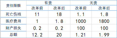 车险综合改革前后有责和无责赔偿限额对比一览表(单位:万元)