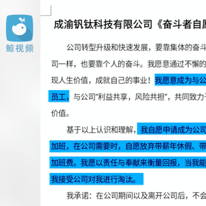 “自愿加班,放弃带薪休假,放弃加班费,自己能力不足时接受公司淘汰。”近日,一份《奋斗者自愿申请书》引发网络热议。据了解,该申请书由成渝钒钛科技有限公司提出。