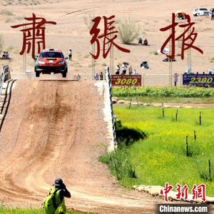 2018年7月21日,2018“张掖农商银行”杯张掖·中国汽车拉力锦标赛(简称CRC张掖站)超级短道赛在甘肃张掖市国家沙漠体育公园国际赛车城开赛。图为赛车行驶过坡地。(资料图) 张渊 摄