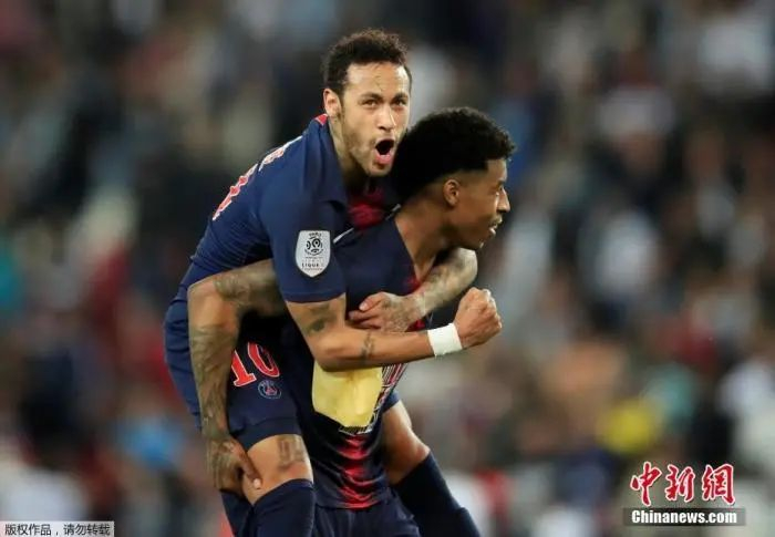 资料图:法甲大巴黎球员内马尔与姆巴佩。