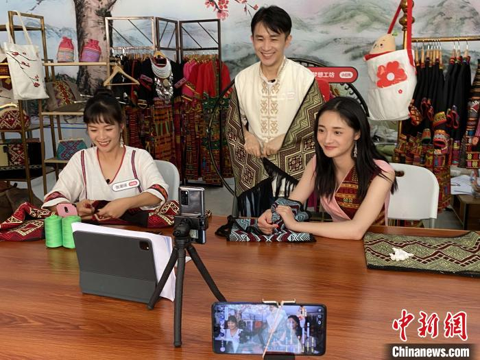 在直播中,张潮瑛介绍黎锦文化,回忆与黎锦结缘的童年故事,也讲述创业理念。“对于非遗创业者来说,销路非常重要,‘直播’带货能帮我打开市场。”张潮瑛说,她既通过网络和用户沟通直播“带货”寻找市场,又希望通过创新方式分享黎族文化。