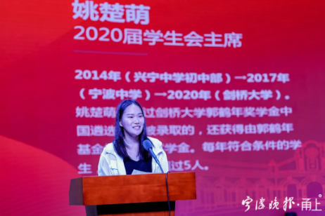 宁波晚报微信公号9月5日消息,继收到剑桥大学正式录取通知书后,9月2日,宁波中学2020届高三毕业生,姚楚萌又收到了一个喜讯。