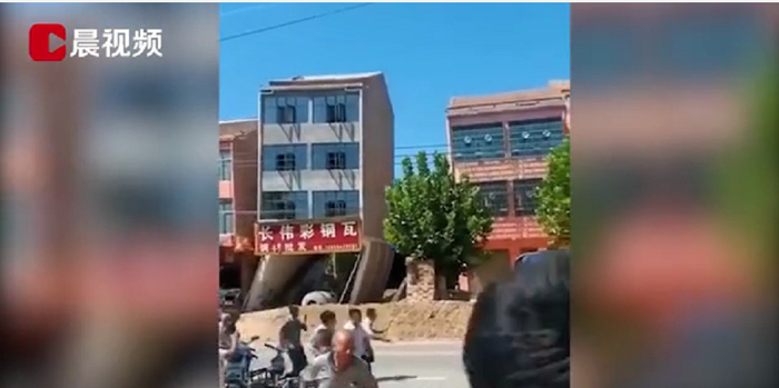 9月4日,在河南周口,一栋倾斜的楼房倒塌,连带砸塌邻居家的3层小楼。发生倒塌的是一栋4层建筑,一楼是一家悬挂彩钢瓦招牌的门店。