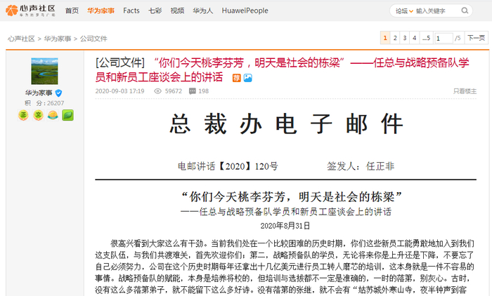 值得一提的是,这是鼠年以来,任正非首次对外公开的内部重磅发声,此次发声发生在华为2020新员工培训上,前一次高调之行为接连走访复旦大学等4所高校。