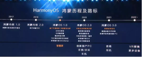 根据华为鸿蒙路线图,在应用第一代鸿蒙OS1.0的智慧屏之后,2020年鸿蒙OS将升级到2.0版本,内核、应用框架也实现了自研,应用场景将扩大到PC、手表、车机等。