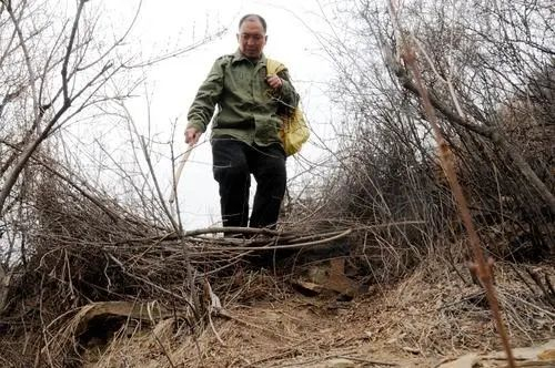 郭海波每次都是一人上山寻找,他背着布袋,用镰刀砍断挡路的荆棘。(2019年3月28日摄)75年前,中国人民抗日战争取得胜利。那些为了民族解放、人民幸福而牺牲的烈士们,有些名垂青史,接受人们的敬意,而有些则默默无闻,埋骨山野。在太行山里,有这样一位村民,他只身一人,翻越茫茫大山,只为将八路军烈士遗骸背下山安葬。他用7年时间,寻找上百次,找到了21具八路军遗骸,让他们入土为安。他就是山西省长治市黎城县洪井乡孔家峧村村委会主任郭海波。必须带烈士下山山西黎城县孔家峧村是太行山区一个狭长的村庄,5公里长的村落分布在山沟的中间地带。这里三面环山,十分隐蔽,抗战时期曾是八路军总部、北方局高干会议会址、一二九师师部、太行军区司令部所在地,朱德、彭德怀、邓小平、左权等革命将领都曾在此工作和生活。郭海波家人世代生活在这里。他小时候就听爷爷和村里老人讲当年八路军杀鬼子的故事。村里老人总说,当年八路军特别苦,在山上和日寇打游击,很多八路军战士都献出了生命。2009年,郭海波在山上偶然发现几块疑似人体骨骼。这些遗骨散落在草丛中,大多都不完整了。放羊老人说,那是“八路军的骨头”。这样的情景让郭海波很难受,“必须带烈士们下山!”他暗下决心。2012年,郭海波放弃在外打工的机会,开始在山上寻找烈士遗骸。怕妻子和孩子担心,他没对家人透露半个字。刚开始,他将遗骸悄悄放到了院里不住人的西屋。有一次,妻子张建玲做饭找柴火,打开袋子一看,是一堆骨头,被吓得够呛。顶着家人的抱怨、村民的不解,在人们“神经病”、“傻子”的骂声、讥笑声中,他坚持不懈地寻找烈士遗骨。“在和平年代,他们不能被忘记,在他们流血牺牲的地方,我们要尽最大努力,把他们全部找回来安葬。”郭海波这样说。披荆斩棘寻骸骨地处太行山区的黎城县,仅狭长的孔家峧村就有十几个山头,茫茫大山怎么找?即便是找到,怎样确认就是八路军的遗骸?郭海波心头一直萦绕着这样的疑问。在郭海波家的祖宅,曾经驻扎过八路军将领,至今还保存着近千张粮单、账单。根据粮单上记录的方向,大致可以定位出当年八路军的活动范围。粮单上记录的送粮数量,大致可以估算出游击根据地的范围。而从粮食种类来看,送细粮的位置大多是野战医院,送粗粮的位置是山上驻地和临时指挥部。他还寻访过村里上了岁数的老人,根据老人的讲述和积累的经验,八路军遗骸周边会有砖头和石板,活着的战士会在上面写上或刻上牺牲者的名字和部队番号等。有时候战斗激烈紧迫,有的牺牲战士就近、就地掩埋,会堆积起一些小土包。在他的脑海中,八路军烈士遗骨分布图越来越清晰。一身迷彩,一把镰刀,一个布袋,一壶白开水,两三个馒头,这是郭海波每次出发前的"标配"。往山上走几乎没有路,平均1.5米高的植被,满地碎石,石块锋利的棱角、带刺的植物和90度的悬崖让人寸步难行。植被茂密的地方,郭海波就用镰刀砍出一条路,但凡人能钻过的地方,哪怕爬着也要钻过去。有些地方太陡峭,只能拽着树杈往上爬。找到散落的遗骸后,他每次都深鞠一躬:“八路军老爷爷,咱们回家吧。”然后把散落的遗骨装进一个编织袋背在身上。郭海波的脚步走遍了黎城大大小小的山头,还走到了武乡、左权等周边革命老区。骸骨背回后,寻找烈士埋骨的地方也并不容易。黎城在山西并不是一个经济强县,当地政府部门对烈士遗骨处理没有专门的项目、经费。从2013年开始,郭海波决定自己动手建设一座烈士陵园。他把陵园地址选在当年八路军开垦过的土地上,和村民赊地,找政府修路,向慈善机构筹款。2017年,烈士墓终于建成,21口棺木安放着21位烈士的遗骸,烈士们静静地躺在这里。“寻找八路军遗骸的工作还要继续,没有完成时。”郭海波说,“和平年代,我们更不能忘记这些为国尽忠的英雄们”。祖宅翻修开纪念馆对革命烈士的崇高敬仰和深厚情怀,深深刻进郭海波的家族精神中。当年八路军总部进驻孔家峧村,郭海波的曾祖父郭建仁是位医生,在村里德高望重,而且郭家有很多间房子,可以满足八路军总部的需要。于是,八路军总部的秘密基地就设在了郭家。八路军总部旧址、中共中央北方局旧址、百团大战指挥部等,当年八路军重要的指挥部门都曾设置在郭海波家50多间土宅之中。当时敌我形势严峻,孔家峧村所有人对八路军秘密基地的事守口如瓶。郭建仁立下祖训,要世代保守这个秘密。郭海波的爷爷郭宜民谨遵祖训,即便抗战胜利后,也没有将这件事公开过。所以在史料中,根本查不到八路军在孔家峧村活动的记录。因为年久失修,郭家部分土宅漏雨甚至坍塌。后来,国家一笔专项修复基金到位,重新修缮土宅,最大程度还原当年八路军战斗和工作的场景。修缮后的郭海波家,成为当地一处红色纪念馆。 按照要求,翻修后纪念馆将专门作为展出使用,不允许再居住。不过郭海波却不想搬走,哪怕让他当一名义务讲解员他也要住在里面,守着祖宅和那段难忘的记忆。