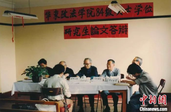 华东政法学院84级硕士学位研究生论文答辩。民盟上海市委会供图