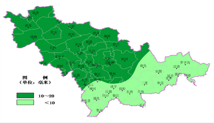 9日夜间到10日白天,全省多云,松原、长春、四平、辽源、吉林、通化、白山、延边、长白山保护区有阵雨或雷阵雨。