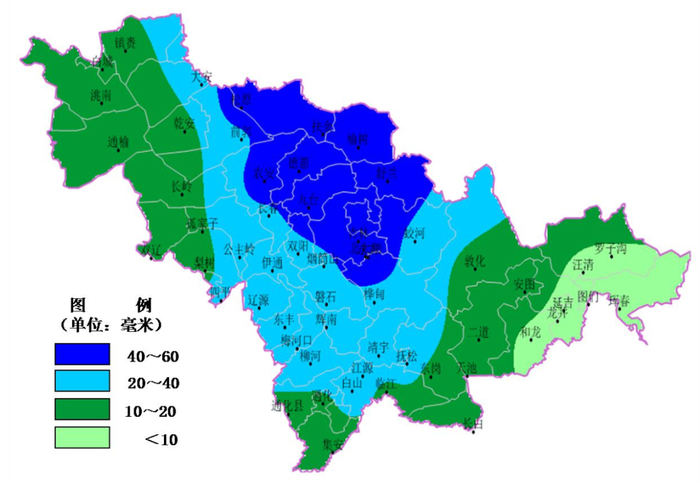 预计今天白天到夜间,松原东部、长春、吉林、四平东部、辽源、通化北部、白山北部有大雨,部分地方有暴雨,降雨量20~40毫米,部分地方40~60毫米,其他地区有小到中雨,降雨量10~20毫米。