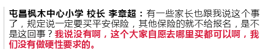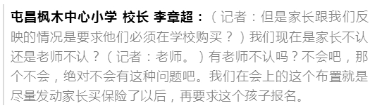 李章超称,学校并没有强制学生购买哪一家的保险。那么,既然没有强制购买,那名在家长群里的老师所发的通知中,又为什么要说校外买的保险无效,一定要在学校内买的才有用呢?