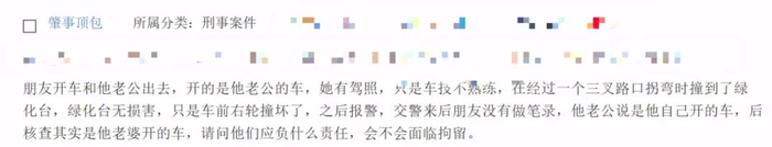 朋友开车和她老公出去,开的是她老公的车。她有驾照,但是车技不熟练,在经过一个三岔路口拐弯时撞到了绿化台。绿化台无损害,只是车前右轮撞坏了。之后报警,交警来后朋友没有做笔录,她老公说是他自己开的车。后核查其实是朋友开的车,请问他们应负什么责任,会不会面临拘留?
