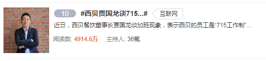 原标题:“996算个啥,我们是715!”知名企业创始人一句话上热搜,网友炸锅了...