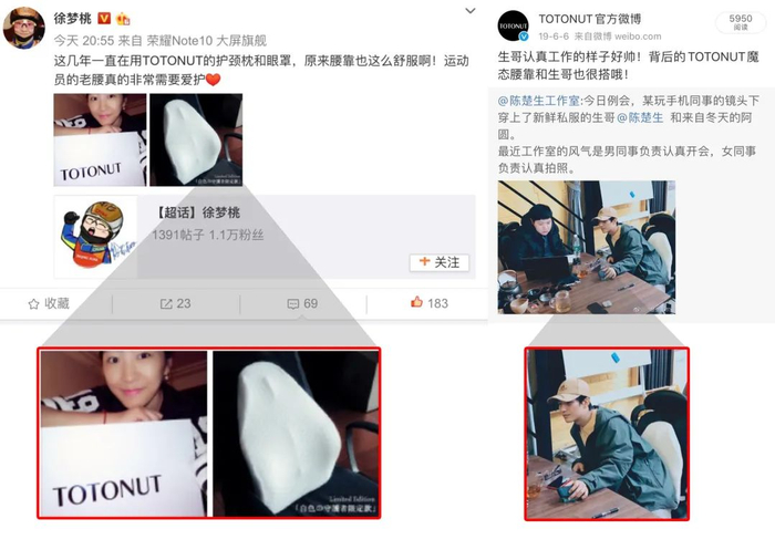 世界冠军徐梦桃、明星陈楚生也都曾在微博晒出自己对totonut腰靠的喜爱!