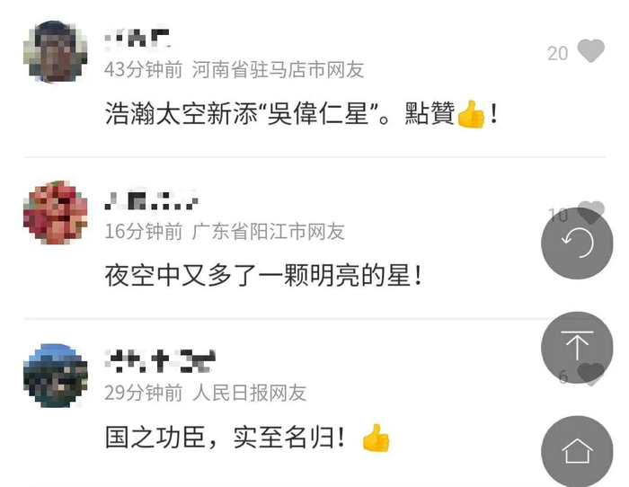 网友纷纷祝贺:“国之功臣,实至名归!”“夜空中又多了一颗明亮的星!”