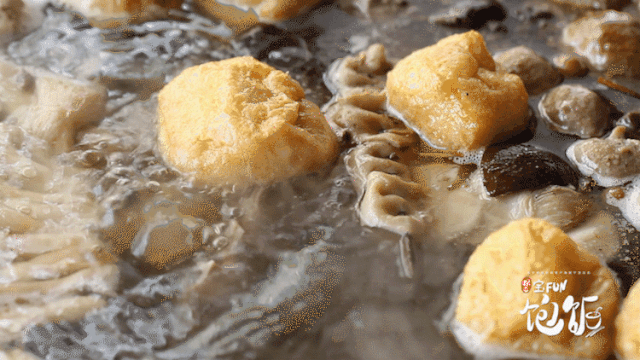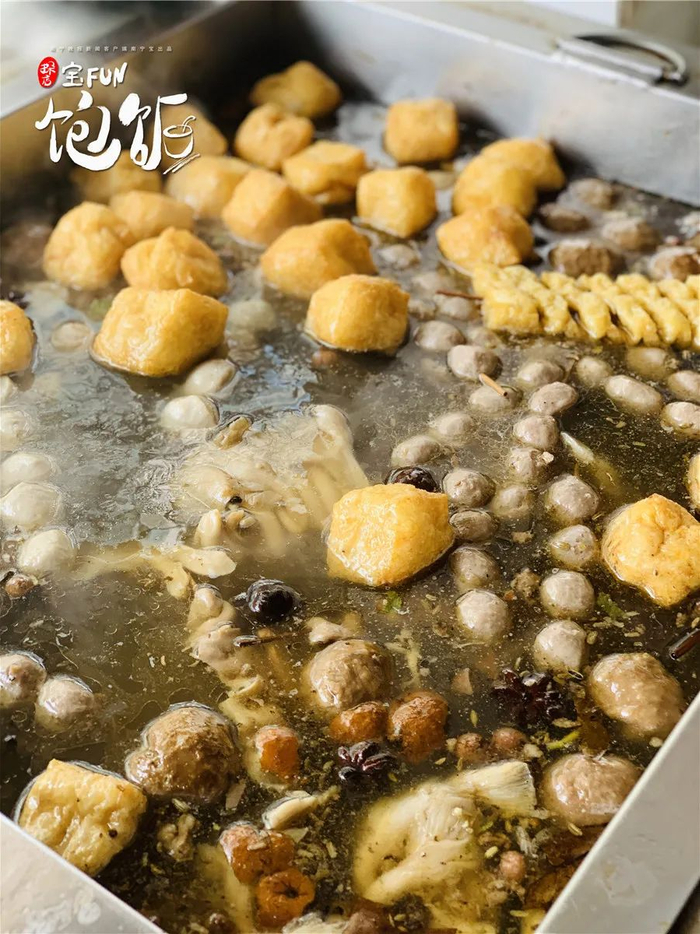 牛腩、牛肚、牛舌、手打牛肉丸、牛肠、牛脆骨……十几种牛杂在这口四方锅中“咕噜咕噜”热情地跳跃。