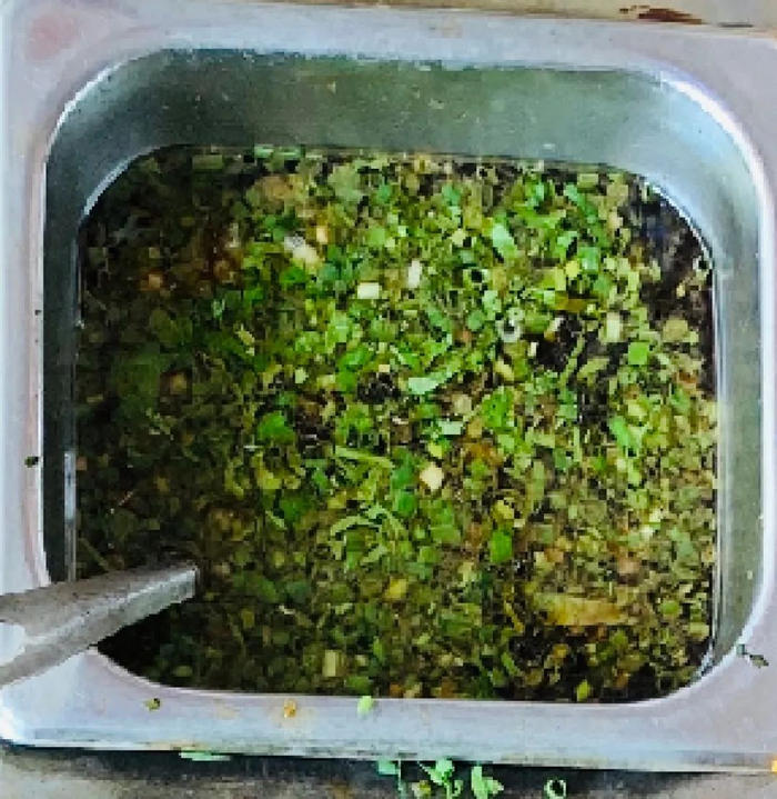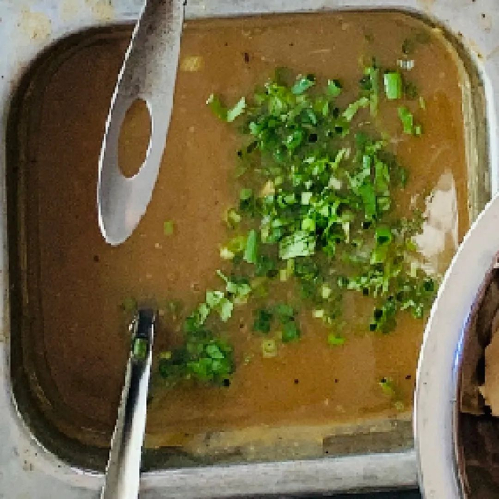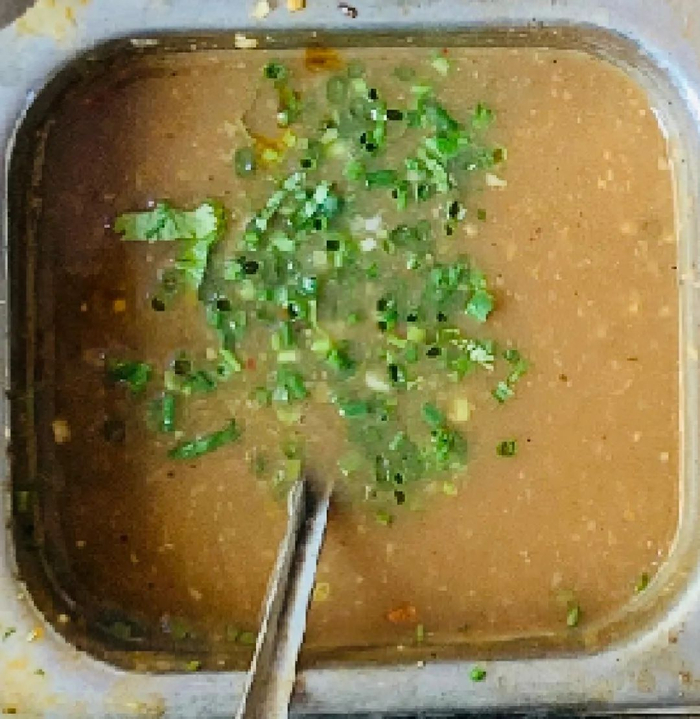 锅里布满了种类丰富的香料,八角、草果、陈皮、桂皮、孜然粒等沉沉浮浮,秘制的香料搭配牛骨反复熬煮8小时,汤汁红亮不浊,是兰婷牛杂最为灵魂的汤底。