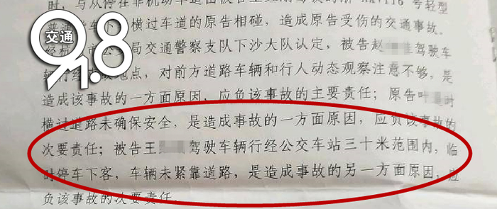 在王先生提供的杭州经济技术开发区人民法院民事判决书中显示,王某驾驶车辆行经公交车站三十米范围内,临时停车下客,车辆未紧靠道路,是造成事故的另一方面原因,负事故的次要责任。