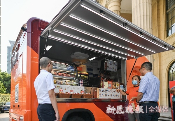 图说:光明早餐车在现场展示 新民晚报记者 陈梦泽 摄(下同)