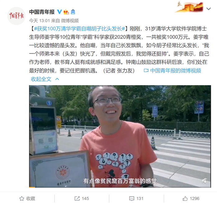 原标题:获奖1000万!清华学霸自嘲发量,29岁浙大博导“少女”...