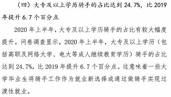更短的劳动时间,对应的必然是强度数倍于其他同等工资的工作,若非如此,外卖骑手中大专学历的占比,可能就不止四分之一了。