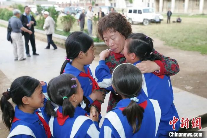 2007年张俊兰与孤儿班的孩子们分别时,孩子们泣不成声。受访者供图
