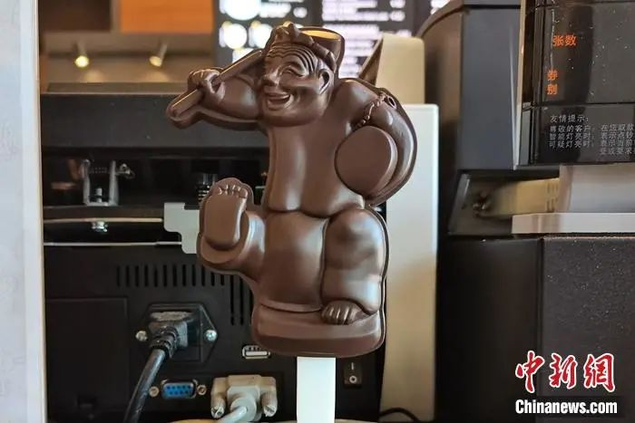 “说唱俑”文物雪糕模型。上官云 摄 两款文物雪糕中,一款造型源自“击鼓说唱俑”,巧克力口味;一款造型源自“错金银云纹青铜犀尊”,抹茶口味。雪糕售价15元一支。 记者梳理发现,人们对上述雪糕的关注点主要集中在造型上,感叹其外形生动逼真,可以归入“舍不得入口系列”。 不过,也有网友调侃,15元一支的价格比较贵。但更多人表示,这个价格可以接受,有的奶茶一杯可能都要二十块左右。况且文创雪糕,吃的是美食,也是创意。 表情欢乐的“击鼓说唱俑” 在国家博物馆,记者也在“古代中国”基本陈列中,找到了这两款雪糕本尊的身影。