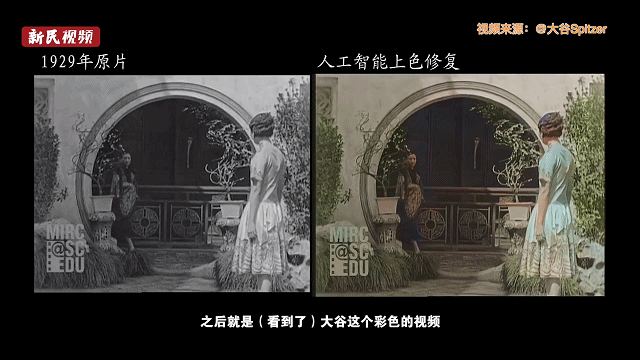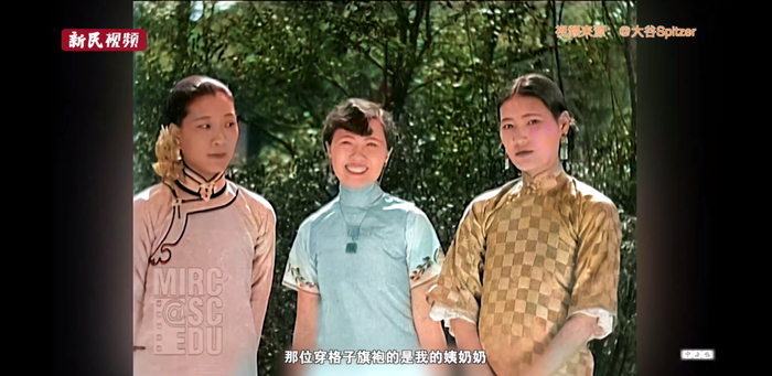 该视频素材源于美国南卡罗莱纳大学影像资料研究中心(MIRC)馆藏胶片,大约摄制于九十年前。经独立艺术家胡文谷AI上色之后,视频备受年轻人关注。王蕾表示,两年前就看过这段视频,深受触动。而重新着色后的视频更拉近了自己和祖辈的距离。