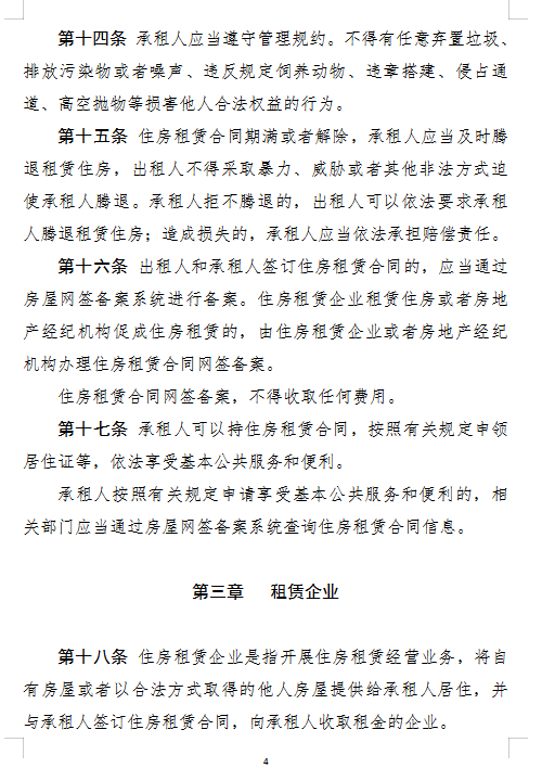 征求意见稿明确,承租人应当遵守管理规约。不得有任意弃置垃圾、排放污染物或者噪声、违反规定饲养动物、违章搭建、侵占通道、高空抛物等损害他人合法权益的行为。